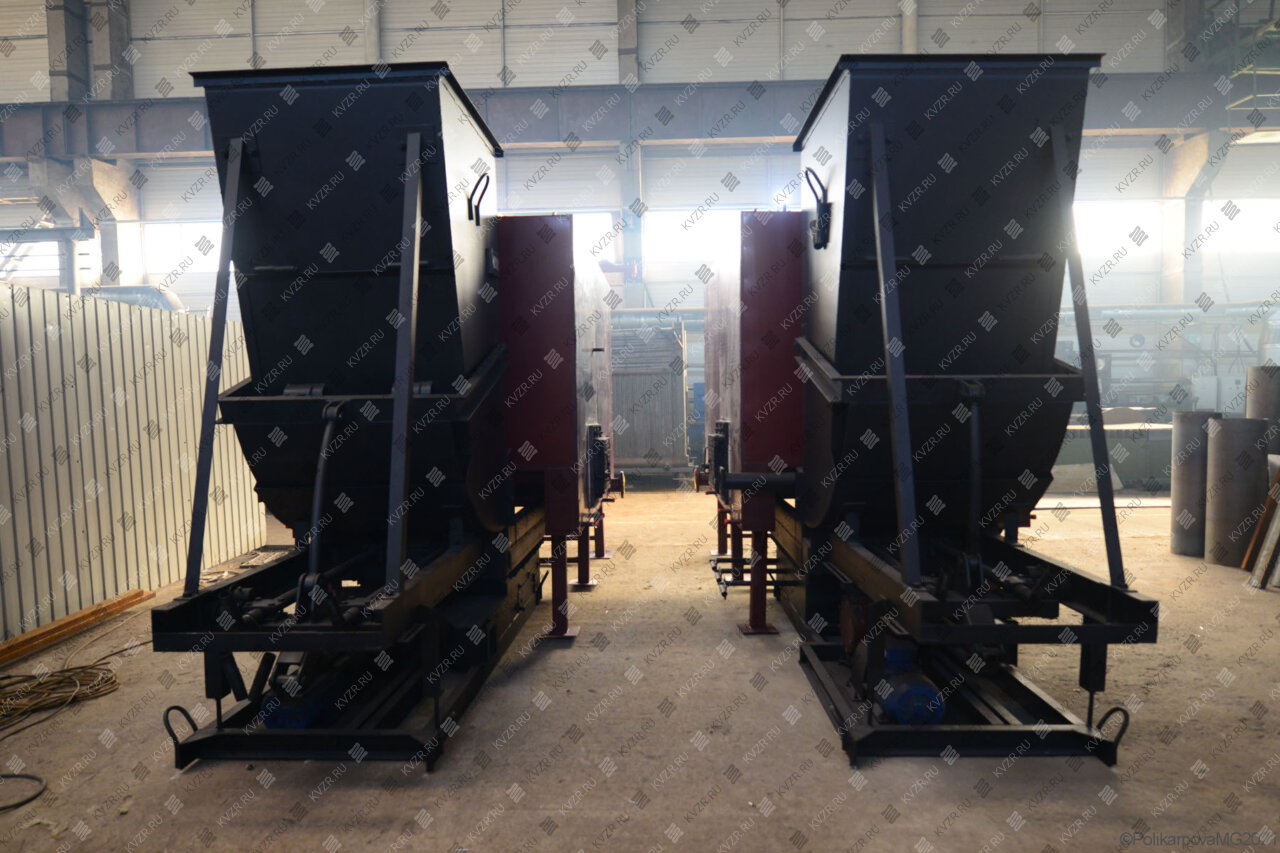 Шлак с топочного полотна сбрасывается вручную, удаление шлака из шлакового канала производиться транспортером золошлакоудаления, либо с помощью телеги. Водогрейные котлы с пневмомеханическим забрасывателем и топкой с опрокидывающимися колосниками - КВм-1,1, КВм-1,25, КВм-1,4, КВм-1,6, КВм-2,0, КВм-2,5, КВм-3,0, КВм-3,5, КВм-4,0.
