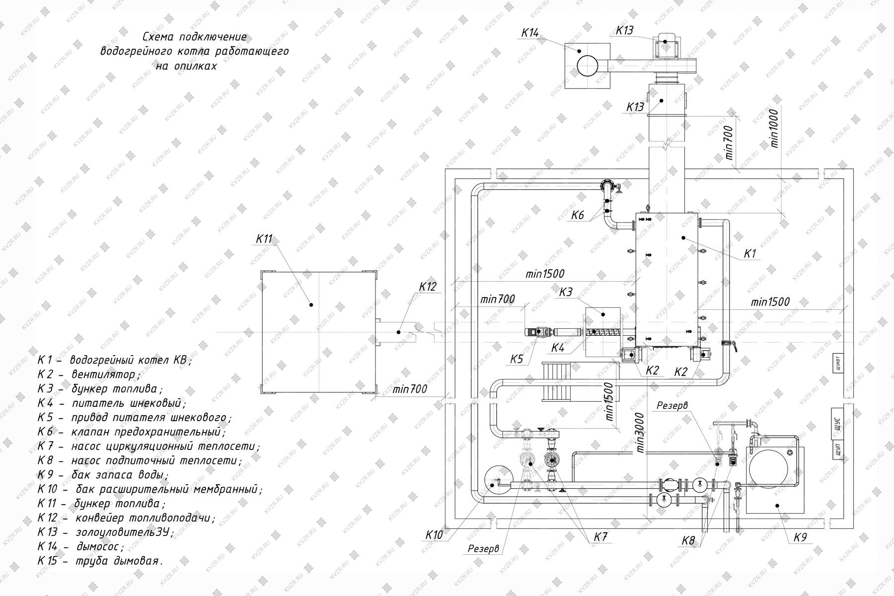Размеры котельной так же зависят от способа наполнения оперативного бункера. При использовании транспортера или шнека размеры котельной меньше чем при заезде в нее спецтехники для выгрузки топлива. Возможно расположение оперативного бункера в отдельном помещении, для того чтобы уменьшить размеры основной котельной.